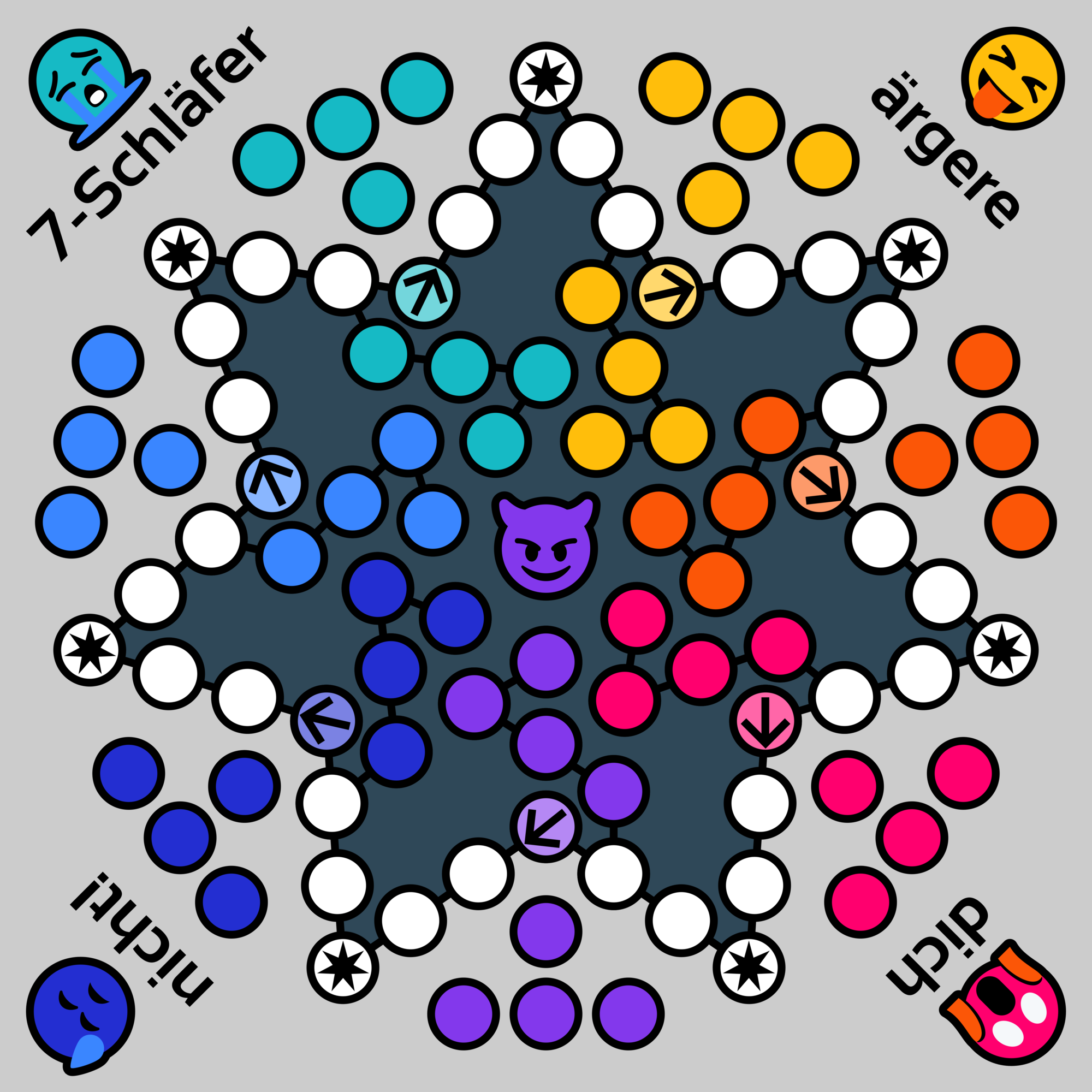 Some time ago, I created a board for the German game "Mensch ärgere dich nicht" for seven players. I'll call it "Siebenschläfer ärgere dich nicht".
